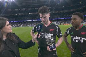 体育资讯04月17日讯 欧冠1/4决赛次回合,阿森纳客场2-1皇马,总比分5-1双杀晋级,赛后阿森纳中场赖斯接受了TNT体育的采访。